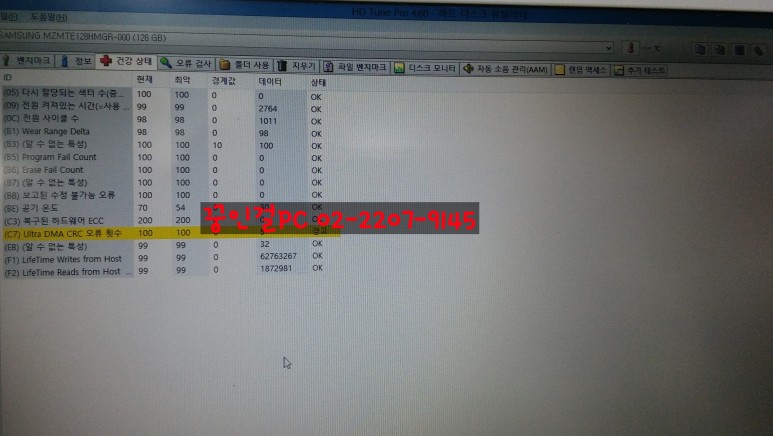 그리고 SSD의 상태를 점검해 보았습니다.